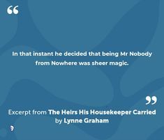 Formulaic and boring. The blurb here and some reviews do not match the book “The Heirs His Housekeeper Carried” by Lynne Graham that I downloaded from the Harlequin website.