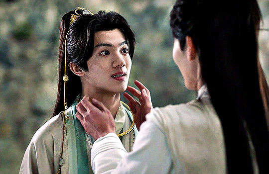 Li Zhifeng opened his eyes weakly. He moved his lips, but no words came out. You Miao lifted a piece of jade from around his neck, then leaned down to tie the pendant around Li Zhifeng's neck.