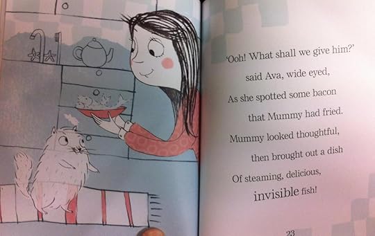 I loved this book. It's the story of Ava, a little girl who encounters an invisible cat when playing in her garden. She adopts him, and together they get up to mischief, starting off with trying to catch a pigeon, then less cat-like behaviour, such as drawing on the walls. Eventually Great Grandad Bill is called in to sort out the problem... Or does he?