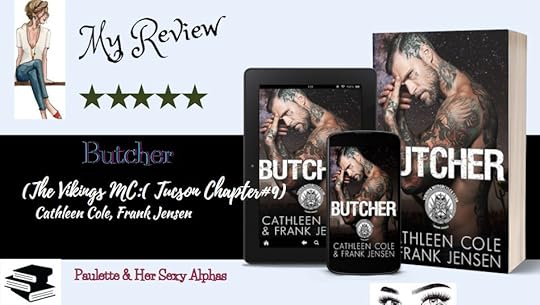 Butcher is the best book in the Viking's Rampage MC: Tucson Chapter 9) Butcher was a standout in character development and plot in this series. Being insane, one would never think there would be a woman who could handle Butcher, but Manta not only became someone of value to him, but was able to mirror his craziness, and the cat. OMG, the cat. My only thought would have the cat (spoiler) not growing attached to Butcher, but rather a distractive component to their relationship. Although the entire series is a collection was not only entertaining, but true to form in the MC world. The authors managed to combine a tough group of men, quirky women, a few strange pets, and a whole lota spice in all of the books. The others in the series I would award 4 stars to. Cole and Jensen make a great writing team. I love anything they write. Coodos for not forgetting to put the MC into your MC romance. Gotta have the blood and guts thing along with the love.