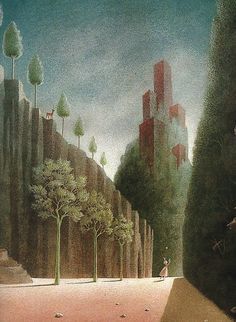 Schroeder's illustrations are very painterly -- her buildings and landscapes remind me a bit of Chirico.
