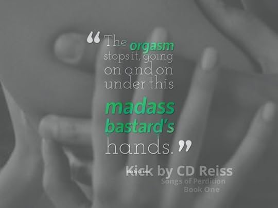 If you know me, you know about the cliffhangers, and the ending of Kick would have been of no consequence. If you don’t know me, well, I do cliffies, and that one was pretty bad. Kick is the first book of a story told in serial novella format, called Songs of Perdition...The next installment in that series is predicted to come out around mid-July, but I have learned my lesson with C.D. Reiss and I will be waiting until the entire series is finished before I read Songs of Perdition. As I mentioned before, C.D. Reiss is a master of the cliffhanger, and I have LOVED everything she has written. I will certainly read the rest of the series, but my fragile psyche can only handle so much. I enjoy her work much more when I can plow through an entire series at once.