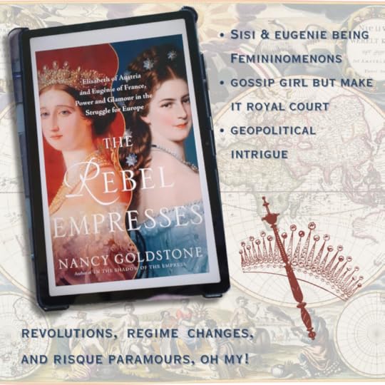 Nancy Goldstone is an author who understands this. She has forged a successful career highlighting or reframing some of the great women of the world, who have either been misinterpreted or outright ignored. She continues that in The Rebel Empresses, a dual biography of Empress Elisabeth (“Sisi”) of Austria and Empress Eugénie of France. Like her other works, this one is thrilling and fast paced, addictively readable, novelistic in detail, and intimate in focus.