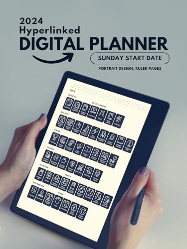 A fully interactive Hyperlinked Digital Planner.Sunday start date.Designed to use on Amazon Kindle Scribe.There are 9 sections with an accessible navigation index page to access.Wide Lined page notes.Year at a Glace View.Monthly Planner.Weekly Planner.Today's Plan.[Template List]