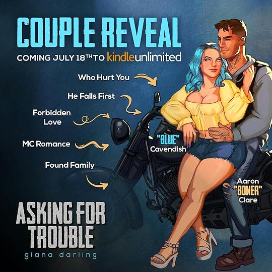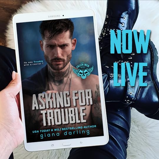 Asking for Trouble is the newest book in the Fallen Men series, a MC series I’ve loved for years! This one is on the shorter side, well shorter for a Giana book so it’s just over 300 pages. This gives all the MC, found family, he falls HARD energy.