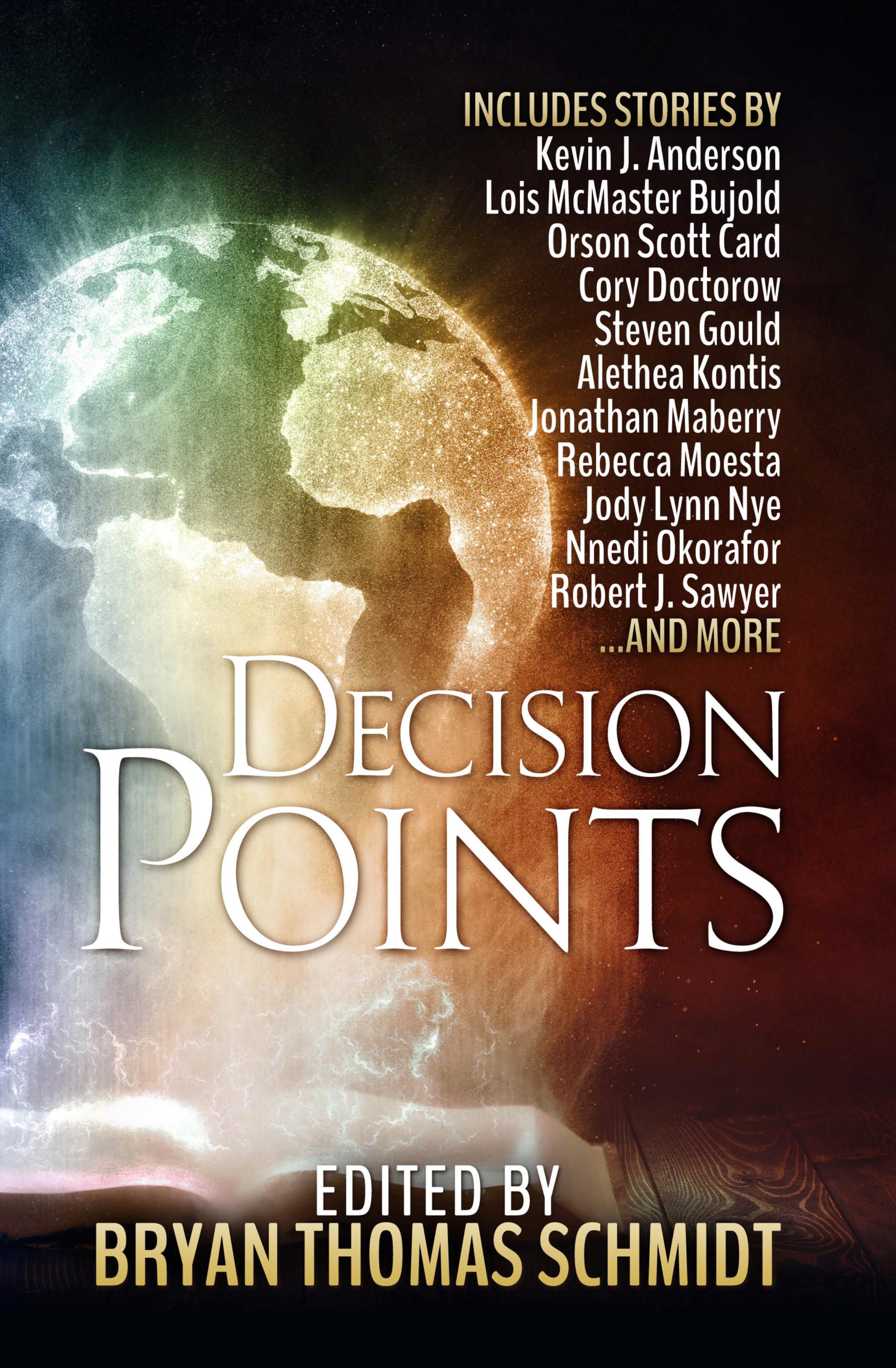 Edited by Hugo-nominated editor Bryan Thomas Schmidt, Decision Points includes both brand new and reprint stories by award winners and bestsellers such as Orson Scott Card, Lois McMaster Bujold, Robert Silverberg, Robert J. Sawyer, Kevin J. Anderson, Jody Lynn Nye, Cory Doctorow, Alethea Kontis, Jonathan Maberry, Nnedi Okorafor, Steven Gould, Mike Resnick, and more.