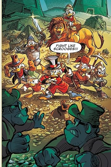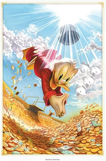Leitura leve e divertida, mas... demasiado Marvel. Tem um grande problema, que estraga a experiência de leitura, o de ser superficial e de dizer em vez de mostrar, o que torna o ponto sentimental do livro raso e inverosímil. No entanto, não deixei de apreciar o Tio Patinhas e o seu tesouro, gostei bastante da arte e das cores e esta capa maravilhosa (saiu a capa standard que é, sem dúvida, a mais bonita).