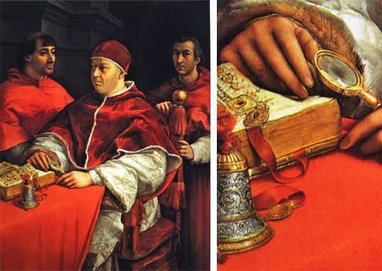 Le pape Léon X avec ses neveux Giulio de Medici et Luigi de Rossi - Raphaël