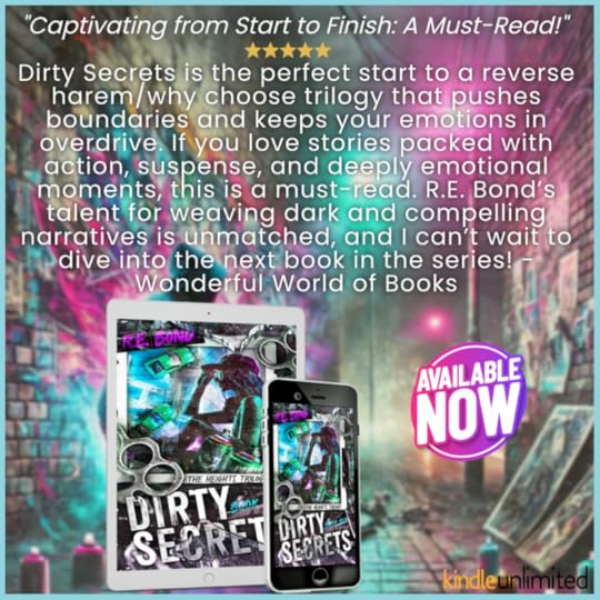 '𝐃I𝐑T𝐘 𝐒E𝐂R𝐄T𝐒' Is the first full length romance book within the (Heights) trilogy by author R.E. Bond. Spoken in 'multiple perspectives'“You’re not a fucking hookup, Raven. I don’t want you to be like those girls who drool over fucking a roomful of guys. I’m selfish, and I don’t particularly want to share you,” he cut in, resting his forehead on mine. “Please say we can keep doing whatever this is for a little longer.”