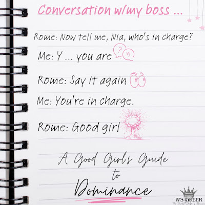 In comes Rome, her new boss. No one knows who he is and he is shrouded in secrets which he is drowning in. Will these secrets get in the way of him being possibly the one for Nia? Will they both finally find comfort with another and will Nia have her perfect Dom? You'll have to read to find out. 😉
