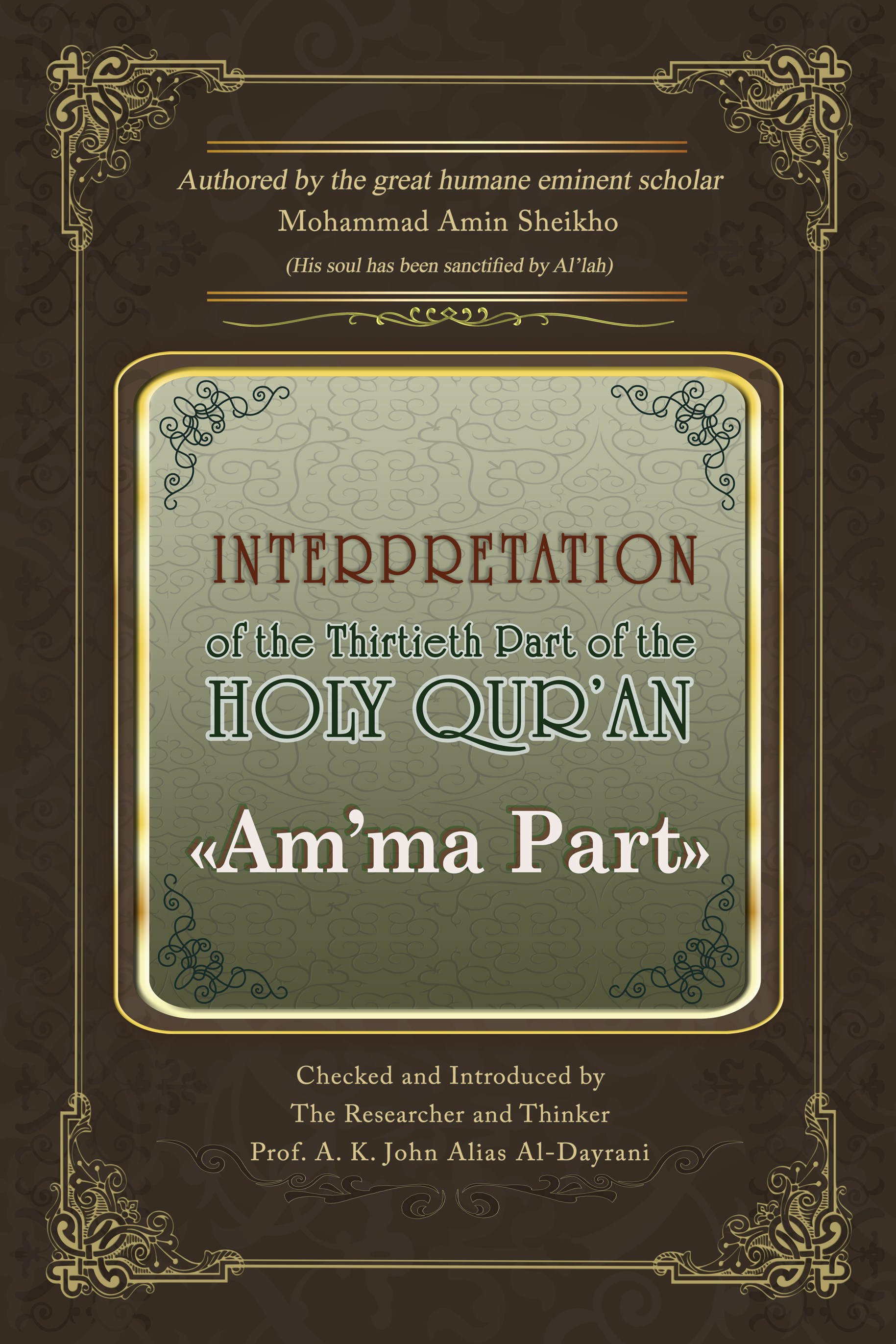 In Am'ma Part there is a reference to sensible and material cosmic miracles to be deeply contemplated with clear thinking so that they may become passages that lead those who seek to recognize the Grand God to get a link with their Provider. If they continue this contemplation until they perceive the greatness of these miracles they will be able to perceive the Majesty of He who perfectly created them; and then their spirit, having submitted before the making and magnified it, will turn to submit and magnify the Maker. At this point they will move from witnessing by physical eye to witnessing by heart and spirit and thus His Light (glory to Him) will flow into the spirits of those who aspire to see Him, allowing them to realize His Magnificence. This is a spiritual witnessing before which a spirit bows and to which it returns in every bowing of every prayer, and in this way our prayer to God and our communication with Him become real not only formal ones. Only then the spirit will surrender to Al'lah and swim absorbed in oceans of sights of His Supreme Attributes, having got its heart-eye open and enjoyed being near to the source of all donation and bliss. It will return to cordiality after coolness and to closeness after farness and will sink with love, infatuated by God after cold shunning. Thereby the spirit will be able to have food and drink from the spring of the Godly Presence that makes it thereafter never incline to any worldly mean desires, rather it will rise up through ladders of perfection, being pleased with approaching its Provider. Such spirits will drink from Him water in abundance that grants them eternal life after which they will never feel thirsty and will never die. It is true that all spirits are deathless, but those faithful spirits who have believed and attained a link and communication with their Provider until they become enlightened by His Light, the those spirits will have surrendered to and got eternal life by the Eternal Soul which provides them with Lofty breathes and Gardens of bliss. Following these rules allows these spirits to get an access to the Godly Presence and to be colored with humanist perfection. All qualities of evil, cunning, and deception will be wiped out from them to be replaced with all qualities of virtue and morality that cause real happiness to penetrate into their hearts and to settle therein. Only the owners of such spirits will gain sublimity and will mount up to true humanity.