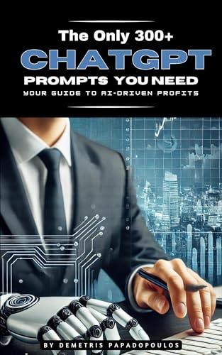 Inside This Book, You'll Proven Strategies: Learn how to harness ChatGPT for various applications, from content creation and marketing to education and business development.Diverse Income Opportunities: Explore multiple ways to monetize ChatGPT, including writing eBooks, creating marketing copy, offering tutoring services, developing online courses, and more.Expert Tips and Tricks: Gain insights from an industry veteran with over a decade of experience in online business, ensuring you get the most out of each prompt.Customizable Prompts: Tailor the provided prompts to fit your unique style and business goals, allowing for endless possibilities and creative freedom.Scalable Solutions: Discover methods to scale your efforts and grow your income over time, making AI a sustainable and profitable part of your business strategy.Why This Book?In a world where content is king and efficiency is crucial, "The Only 300+ ChatGPT Prompts You Your Guide to AI Profits" stands out as the definitive guide for anyone looking to leverage AI for financial gain. Demetris Papadopoulos brings his wealth of knowledge and experience to the table, ensuring you have all the tools you need to thrive in the digital economy.