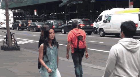 She's putting herself at risk of getting her ass fired and on the next plane back to Kissimmee. Most people will do exactly what these poor people are doing and ignore her. And not just in Manhattan, either. Try it in Portland and see what kind of response you get.