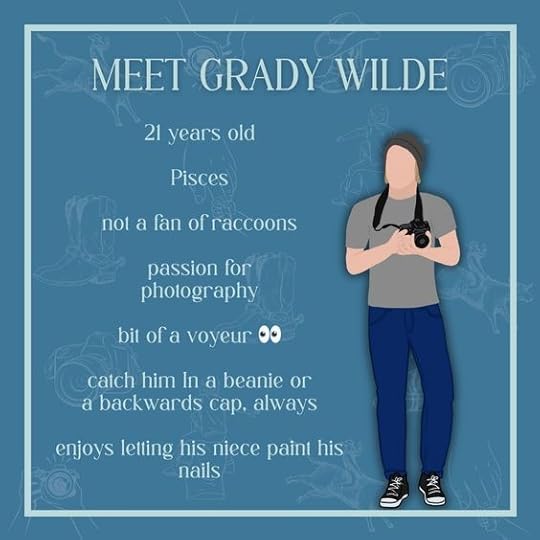 Grady Wilde is twenty one years old and is Jade, Boone’s wife’s younger brother. Grady has been going to college and has just finished his third year. Grady tried his hardest to do well but he doesn’t enjoy college at all. Photography is his heart but his parents constantly discouraged him from following his dream. He has decided to quit school and pursue the only thing he has ever really wanted to do. Jade as agreed that he can stay with them since Boone is gone so much. Grady is gay but little does his sister know that he has always had a crush on her husband. He always considered it a silly crush that he would outgrow. But once he learned of their divorce, and Jade is away for awhile, something happens that changes everything.