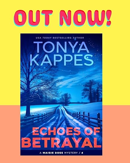 Echoes of Betrayal is the fourth book in the Maisie Doss Mysteries by Tonya Kappes. I’m a huge fan of Tonya’s cozy mysteries but I really love this harder-than-a-cozy but softer-than-a-traditional-mystery series. The series is much darker and less Dottie-esque (a reference to the Campers and Criminals series). The books in this series take me a bit longer to read than other books/series in the author's catalog due to the complexity of the characters and plot. I don’t want to miss anything.