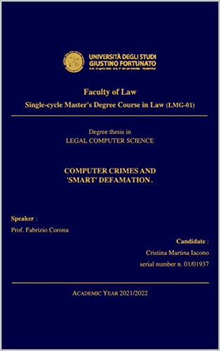 Cybercrimes and smart defamation. the book is oriented to the clarification of cybercrimes, as well as to the expansion of the law that governs them. Extension that concerns all crimes committed through IT devices or rather connected to the network. Specifically, we are talking about online defamation, and how this is looming in various crimes, precisely computerized or that intertwine other realities resulting, for example, in the violation of personal data, confidentiality, and the reputation in toto of the person victim of any crime committed to through the internet, in this case defamation. Therefore the possibility of adjusting the penal code is evaluated, and to extend Law 48/2008, to include all those crimes, committed in the virtual world.
