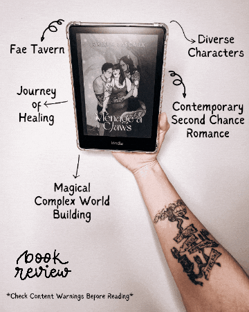 This contemporary, second-chance romance is a beautiful journey of healing. I loved visiting the fae taverns and the magical, complex world-building. The characters within the story are diverse.