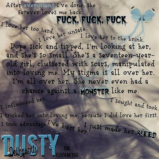 "Dusty loves me too hard, too deep, too far, but it’s the kind of madness I crave. It hurts but it’s familiar to me and comfortable like home, because loving this person has hurt for as long as I can remember."