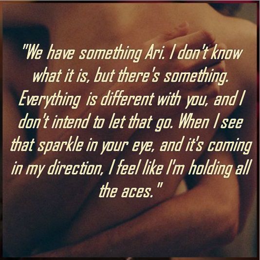 "We have something Ari. I don't know what it is, but there's something. Everything is different with you, and I don't intend to let that go. When I see that sparkle in your eye, and it's coming in my direction, I feel like I'm holding all the aces."