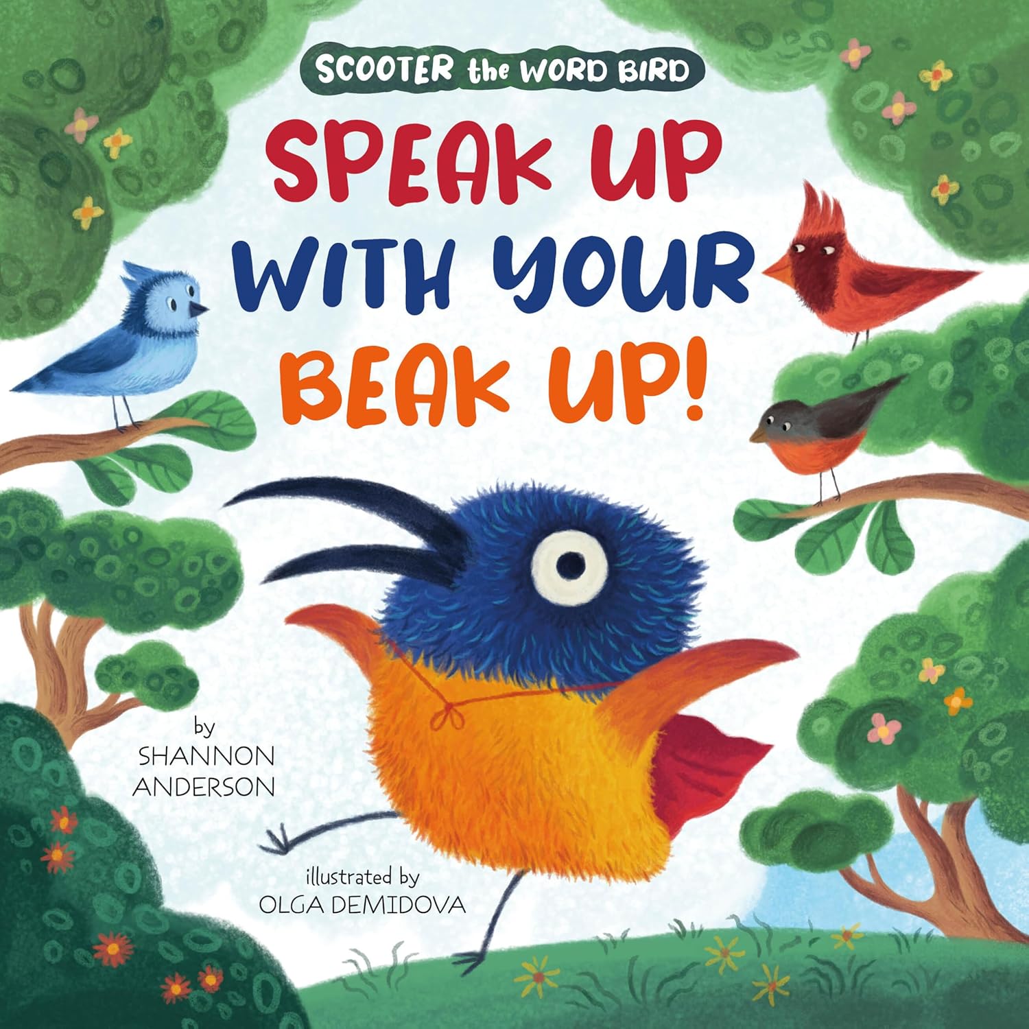 SPEAK UP WITH YOUR BEAK UP is a wonderful book that teaches us, or reminds us, the importance of advocating for ourselves. The different characters all have different feelings surrounding the day's activities, and once Scooter reads about the importance of using your words to speak up, the other birds realize they should say how they've been feeling. Wonderful book with beautiful, colorful illustrations!