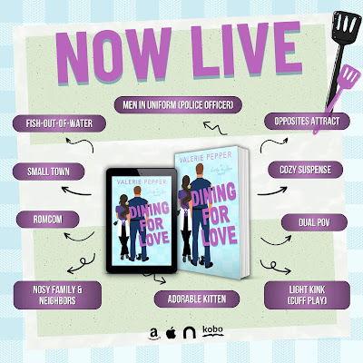 “Dining for Love” by Valerie Pepper was an adorable romance featuring big city cop Reid MacKinnon and small town diner cook Willa Dean Dash.