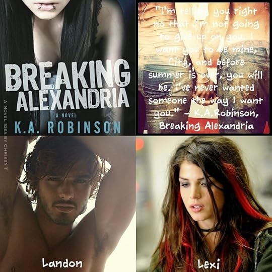 Breaking Alexandria is a fantastic book about growing up and finding yourself. The characters are well written and are easy to get in to. K.A Robinson is a wonderful author and I really love reading the stories she creates. I found it difficult to put this book down and really loved the characters (even Joel). A good book that I definitely recommend. Great job again K.A Robinson and I cannot wait for your next adventure.