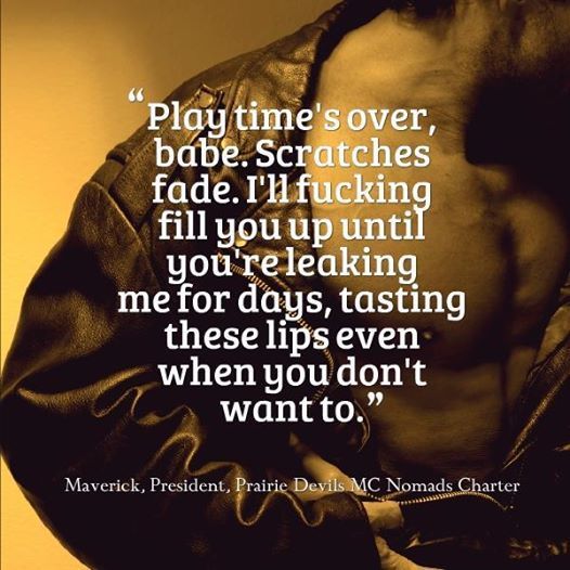 Aaron “Maverick” Sturm is the President of the Prairie Devils Nomads charter and is tasked with starting a charter in Grizzlies territory. Although they are outmanned the town wants the Grizzlies out because of the atrocities committed in the name of the MC. June Daniels has been held captive by the Grizzlies ever since they busted into her family’s home and changed her life forever. She is all that is left of her family and living a life she never imagined. The only thing she wants is vengeance against the Grizzlies. Taking as collateral against the Grizzlies June never counted on falling for the kind of man she hates, a man in a MC or falling for his dominant demands. Maverick will protect June she is his property and will be his ol lady, a Prairie Devil never backs away from a challenge.