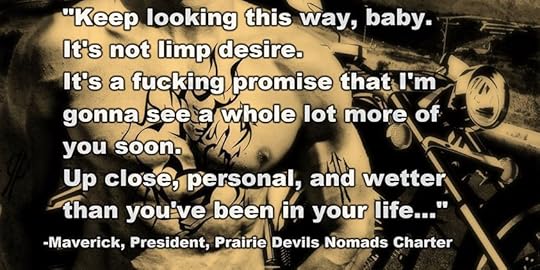 Aaron “Maverick” Sturm doesn't know what it means to settle down. The President of the Prairie Devils Nomads charter is way too hardened, untamable, and dominant for any old lady.