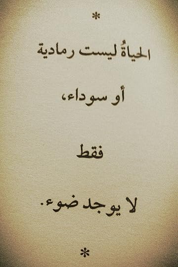 "الحياةُ ليست رمادية أو سوداء فقط. لا يوجد ضوء." الظلام تَجربة حياة، عليكِ خوضها وحدك.. ونعم، لا يوجد ضوء. يوجد فقط بعض المُثيرات الضوئية التي تظهر من حينِ لآخر، بعض المُنبّهات التي تؤكد أنّ ثمة آخرون في هذا العالم يشعرون بكِ، يعلمون كل شيء، وربما يُشاركونك التفاصيل نفسها.. كل ما في الأمر أنّه تّم إختيارك لتوثيق المحطات اللازم إجتيازها لإدراك الطريق.. وإدراك أنّه لا يوجد ضوء بنهايته، وأنّ ذلك ليس سيئاً أبداً. ......