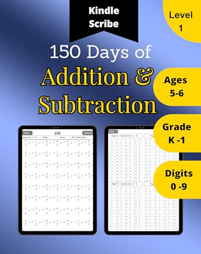 Compatible with Kindle Scribe Hyperlinked interactive workbook Links for easy navigation 50 single digit addition problems 50 single digit subtraction problems 50 single digit mixed (addition & subtraction) problems