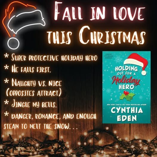 Holding Out for a Holiday Hero by Cynthia Eden is a stand alone, holiday, cheeky romantic suspense. If you like an alpha, possessive hero who will do whatever it takes to keep the woman of his dreams safe, this book is for you!