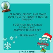 So Cynthia Eden's Holding out for a Holiday Hero was my first read to kick off the holidays. I like to read the Holiday books the entire month of December.