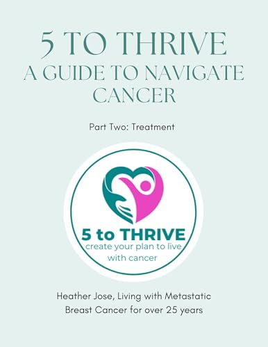 Written by Heather Jose, who has been living with stage IV (metastatic) breast cancer for over 25 years, 5 to Thrive A Patient Guide to Navigate Cancer focuses on the things you can do during treatment. The five areas of focus are mental, physical. nutrition, medical, and support to help you build a team and a plan to kill cancer. This 19 page guide is easily read and applied.