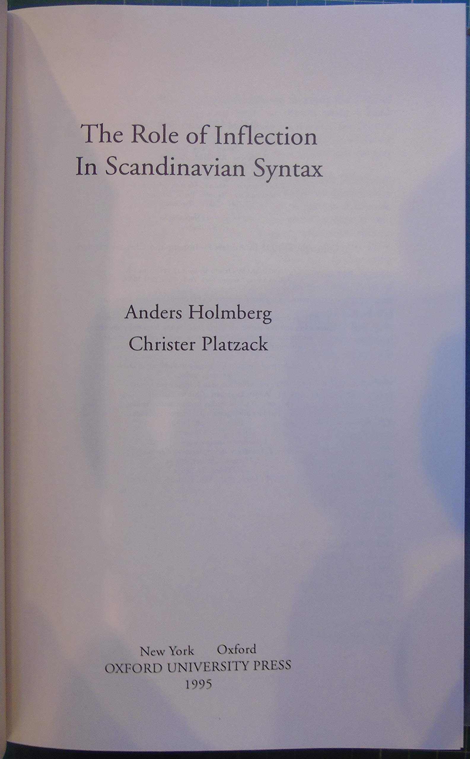 In this book, Holmberg and Platzack present a theory of the role which subject-verb agreement and case morphology play in syntax. Their theory is based mainly on a detailed comparison and inflectional properties in the various Scandinavian languages, although many other languages are
