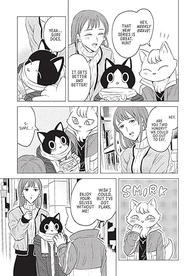 ENGLISH: Very cute manga which touches on ever-relevant topics, not too lightly, not too deeply. A gentle story of struggle, internalized discrimination, and even humans who do something wrong, recognize it, and try to change. Quite honestly, the text given on the back of the manga or here on Goodreads summarizes the manga best. You can change "cats" into any marginalized group, and the story will work.