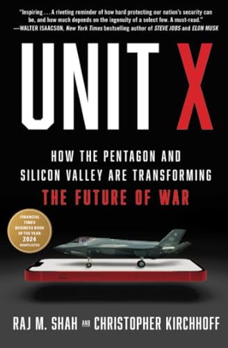 Unit X: How the Pentagon and Silicon Valley Are Transforming the Future of War (2024) by Raj Shah and Christopher Kirchhoff is a book about improving the technology that the US military uses. Shah was an F-16 pilot who has an MBA built a startup. Kirchhoff worked with the Obama team on military affairs. He went to Harvard and has a PhD from Cambridge.