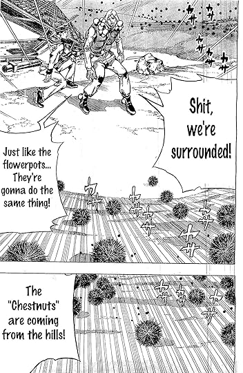 El enemigo de este tomo tiene un aire a Bruno Bucciaratti, capaz que Araki hizo una fusión del personaje junto a lo que deparaba en el último episodio de Golden Wind.