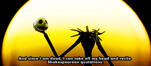 "Say," she begins, her eyelashes flitting, "you two wouldn't happen to know someone named William Shakespeare?"