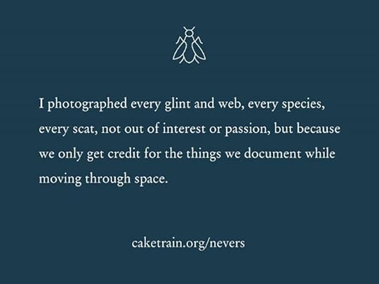 Well, she somehow evokes diary entry and blog and tweet and manifesto, all wrapped up in pulsating truth, and yeesh is that exactly the worst description I could possibly give now that I re-read it. I am all a-cringe. But that is the thing with Megan Martin. I am hard-pressed to aptly describe the stun ray gun of this collection without quoting her directly, but endless bullet point quotes does not a review make, and anyway just go buy the book. After I read Nevers I went and bought all of Caketrain’s entire shit for like $60 on paypal. They are not giving me money or even a cool tote for saying so!