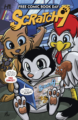 He's back for Free Comic Book Day! The world's greatest superhero cat returns in this all-ages, all-cat, all-free funny-book featuring all-new stories! Scratch is an ordinary cat who can summon his nine lives to get himself and his pet posse out of a jam. This new edition is a direct lead-in to the summer's monthly Scratch9 series: Cat of Nine Worlds! The fur starts flying here!