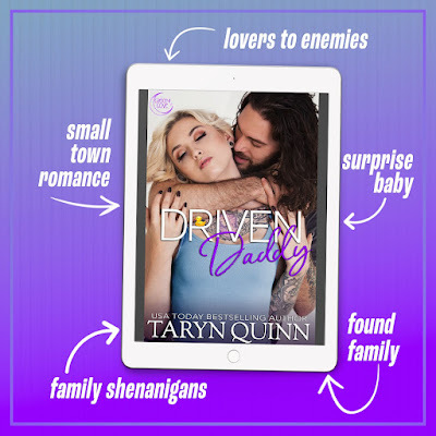 I love the Crescent Cove books and Driven Daddy is a great addition to this stellar series! Driven Daddy is a complete standalone but does have some spoilers, as fan-favorite characters from books past make appearances throughout. The story is emotional, swoony, funny, and exactly what you expect from the dynamic duo behind Taryn Quinn.