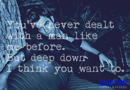 “He made her feel electric. Like volts of energy fizzled through her veins, racing, constantly stimulating. It was intoxicating and thrilling. And for the first time in her life, she felt truly alive.”