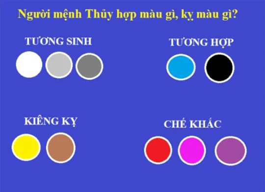 Theo ngũ hành, mệnh Thủy hợp với màu bản mệnh (Thủy) và màu tương sinh (Kim). Điều này giúp người dùng dễ dàng chọn được màu sắc vừa đẹp mắt vừa hỗ trợ tinh thần khi sử dụng hằng ngày.