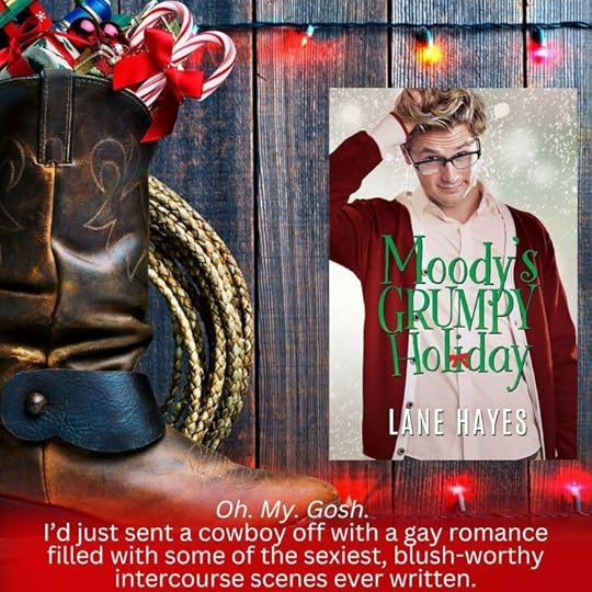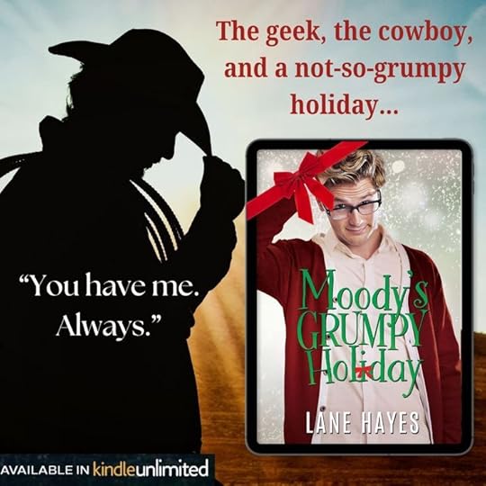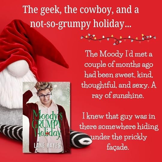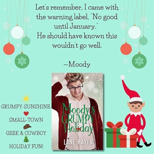 Moody’s Grumpy Holiday is an MM grumpy-sunshine, romantic comedy featuring an adorkable geek, a hunky cowboy, and a little seasonal humbug.