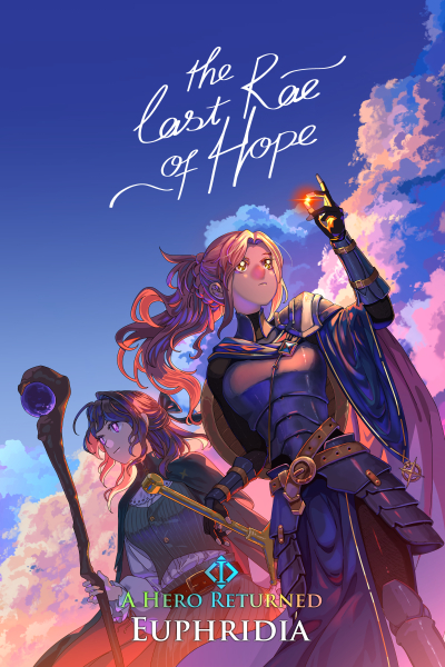 In my opinion, one of the greatest pleasures of Euphridia's A Hero Returns, the first book in the A Rae of Hope series, is this meta-commentary from Rachel and Nora, two young women who find themselves in their favorite web novel five years after it went on hiatus. Their arrival isn't random—they were hired as interns by the company hosting the novel and physically pushed into the story by the web novel's author, Eura "Euphridia" Abrams (a fictionalized version of the actual author, adding another meta layer).