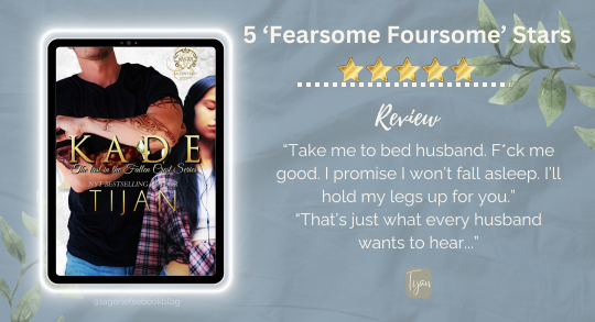 ARC review of Kade by Tijan ⭐️⭐️⭐️⭐️⭐️ 🌶🌶 I have always been a fan of the Fallen Crest/Crew world! This book brought it home for me. You get to see them grown with children! If you thought Mason and Logan were a force before? Oh babyyyy you must witness Daddy Mason and Daddy Logan!! And Maddy, her sociopathic tendencies bring on the perfect comedic dialogue. This girl is her Daddy times 10 with a side dish of Logan. (Because Logan is the funny one.) 😉 If you haven't read any of the books, why wait? Start with Fallen Crest High. Dive into the world of Mayham. The Fearsome Foursome are waiting for you.