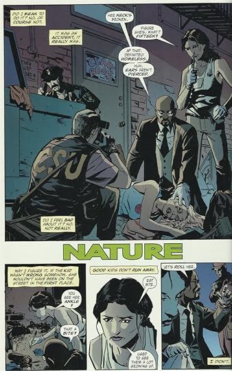 It opens with a single-issue story, "Nature," written by Rucka and drawn by Steve Lieber. In some way, this may be the oddest GC story out of the forty issues, simply because its narrator (while a cop) is in no way connected to the MCU. Instead we get some insight into the other side of the coin, one of Gotham's finest examples of corruption, with some twists and turn to match.