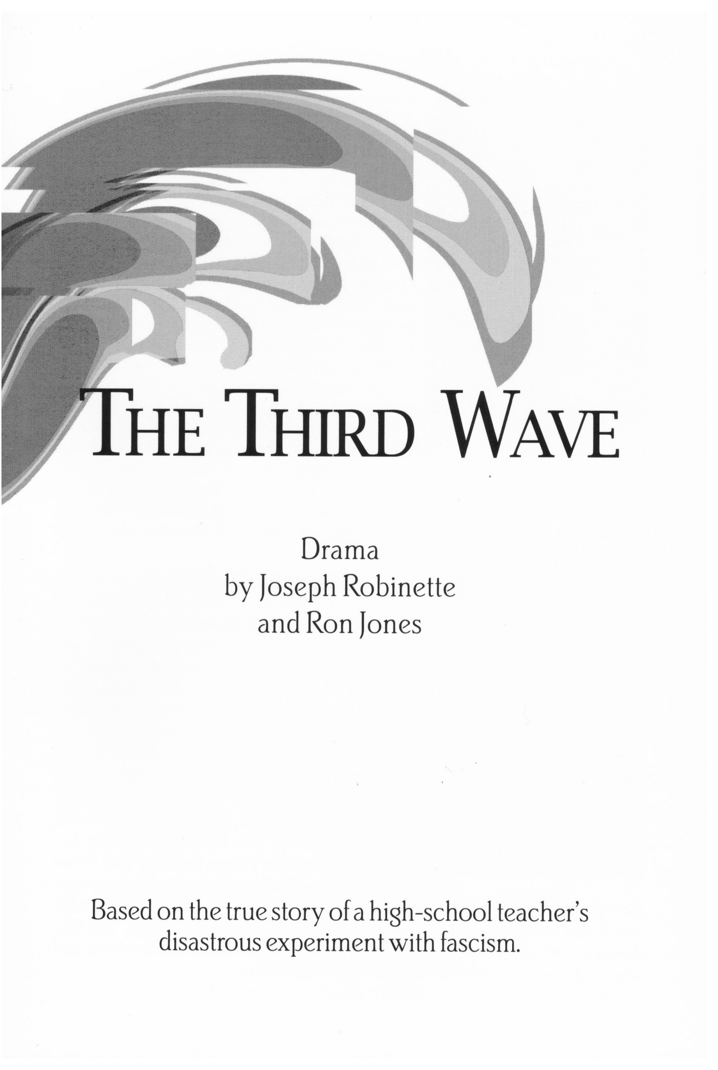 The Third Wave is a true story about a high-school experiment in fascism that went out of control. Set in 1967 in Palo Alto, California, during the Vietnam war, racial integration and social revolution, the play centers around a young, popular teacher, Ron Jones, and his world history class. When a student asks how so many people could be led to deny the Holocaust of World War II, Mr. Jones decides to demonstrate by giving his students an exercise in discipline not unlike that of a totalitarian society. To his surprise, the students delight in the order and power of that discipline and relinquish their freedom in favor of the prospect of supposed superiority over other students in the school. The class adopts the name "The Third Wave," and soon many others, even from neighboring schools, clamor to be part of the "elite" group.