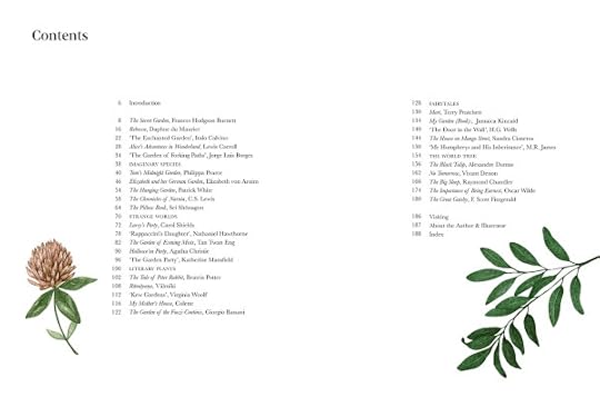 Other works mentioned include the short stories The Enchanted Garden by Italo Calvino (whose parents were botanists) and Kew Gardens by Virginia Woolf; Daphne DuMaurier's Rebecca; Elizabeth and her German Garden by Elizabeth von Arnim (Mary Annette Beauchamp); The Chronicles of Narnia by C S Lewis; Sei Shonagen's Pillow Book; My Garden (Book) by Jamaica Kincaid, The House on Mango Street by Sandra Cisneros; The Great Gatsby by F. Scott Fitzgerald and Scene Two of Oscar Wilde's The Importance of Being Earnest.