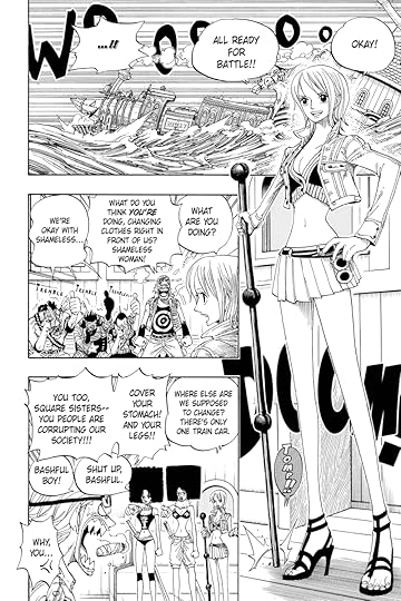 I was really disappointed all through this volume! A whole seven chapters were wasted to show some stupid matches not including even one impotant villain of the CP9! I liked Robin even more in this volume, though. For her persistence on not letting her friends be involved in this matter, and the time when Zoro cut a ship into two pairs.